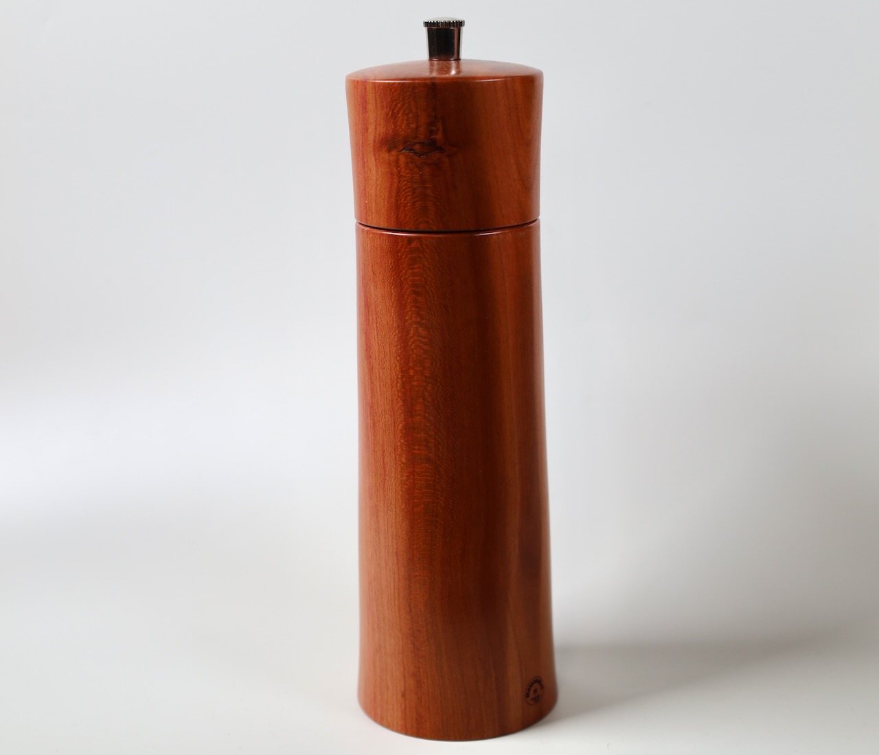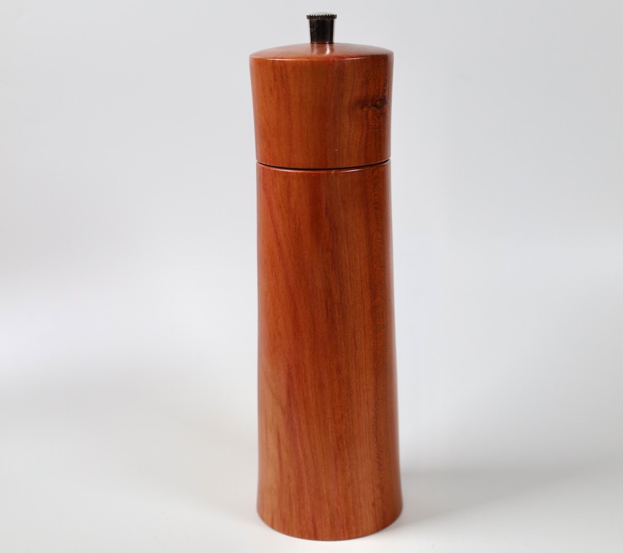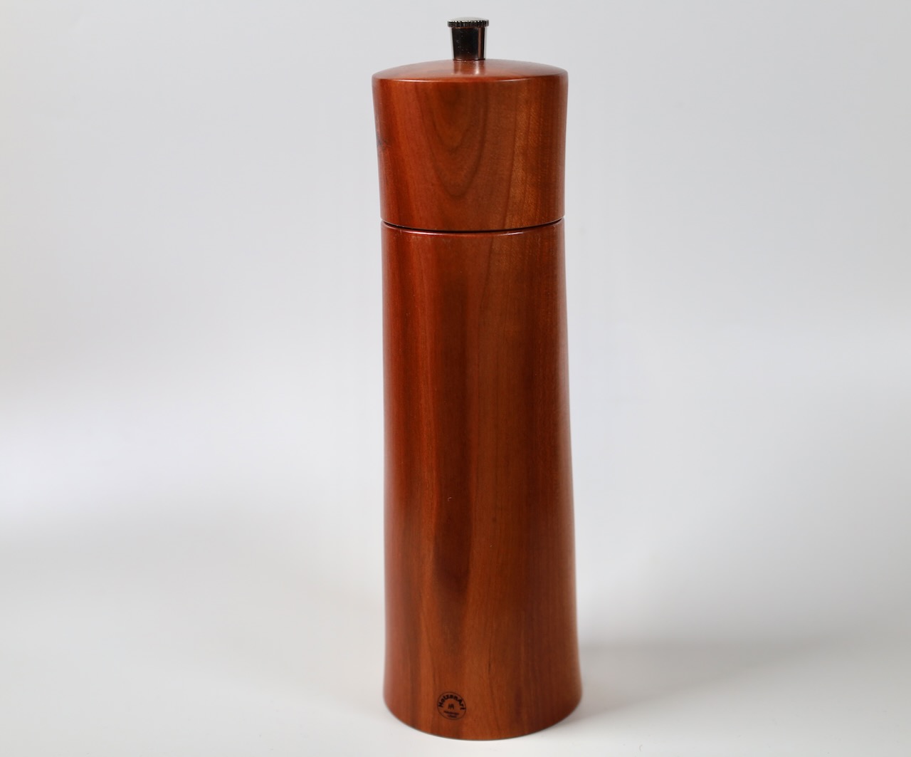 Edle Gewürzmühle aus einem ganz besonderen Stück Zwetschgenholz mit herrlicher Maserung in moderner Form. Die Form ist bewußt schlank und elegant gehalten. Das Präzisionsmahlwerk stammt von der Schweizer Firma Strässler und ist sehr langlebig.