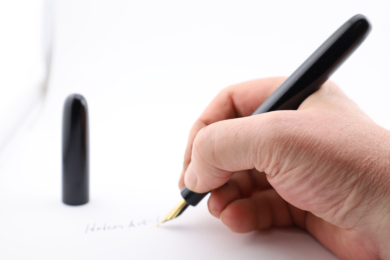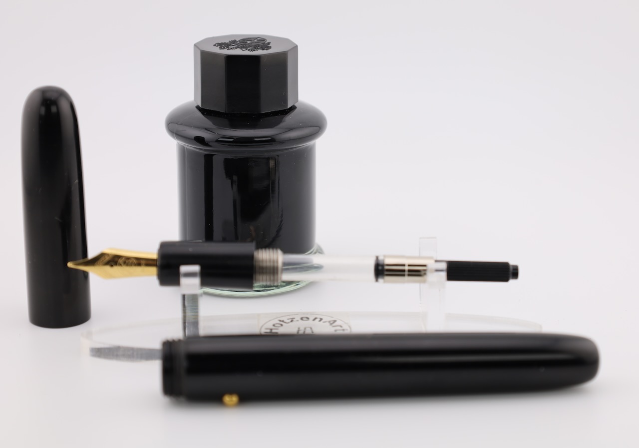 Die hochwertige Feder sorgt für einen gleichmäßigen Tintenfluss und ein außergewöhnlich weiches Schreibgefühl. Ob für Unterschriften, Notizen oder persönliche Briefe – dieser Ebonitfüller steht für Stil und Präzision.