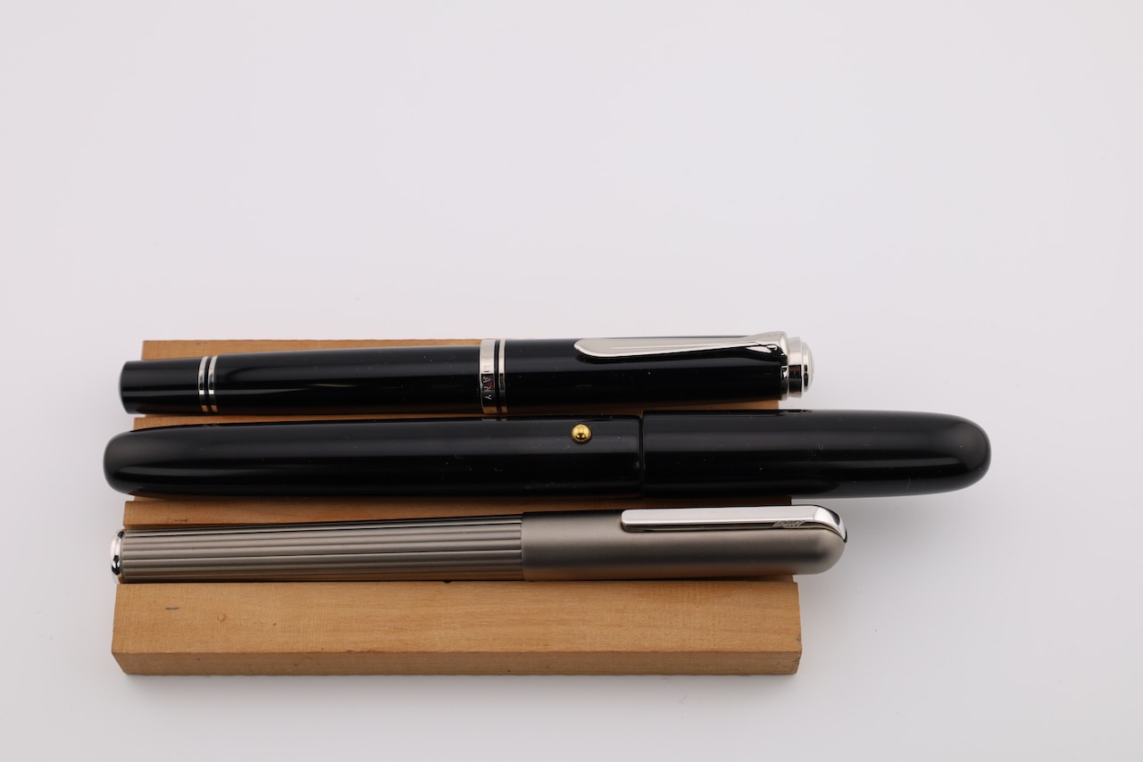 - Tinte: Der Füller schreibt mit Tintenpatronen mit "Standard Anschluss" (z.B. Pelikan). Sie können ihn entweder mit 1 Stk. von den großen Tintenpatronen (Pelikan 4001, GTP) oder mit 2 Stk. von den kleinen Tintenpatronen (Pelikan 4001, TP) befüllen.