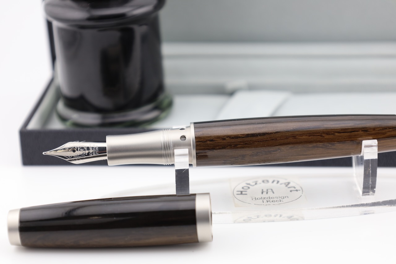 Handgemachter Kolbenfüller aus Mooreiche & Edelstahl – Exklusiv