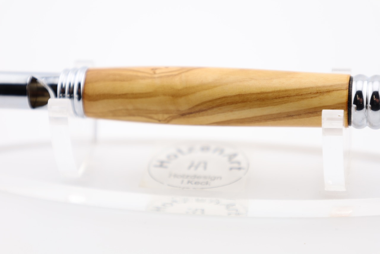 Das verwendete Olivenholz ist nicht nur optisch ein Highlight, sondern auch besonders dicht und widerstandsfähig. Die feine Oberflächenbehandlung bringt die lebendige Maserung zur Geltung und schützt das Holz dauerhaft.