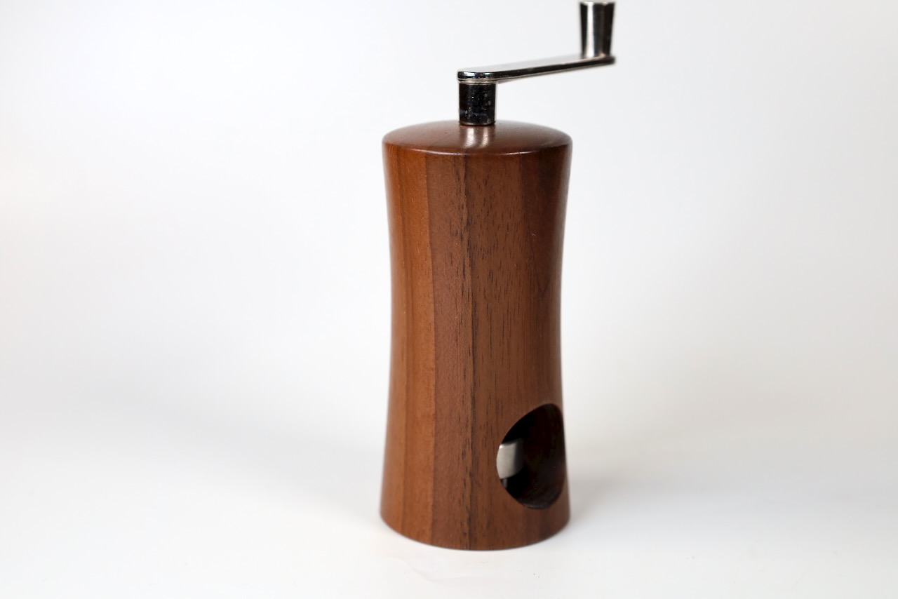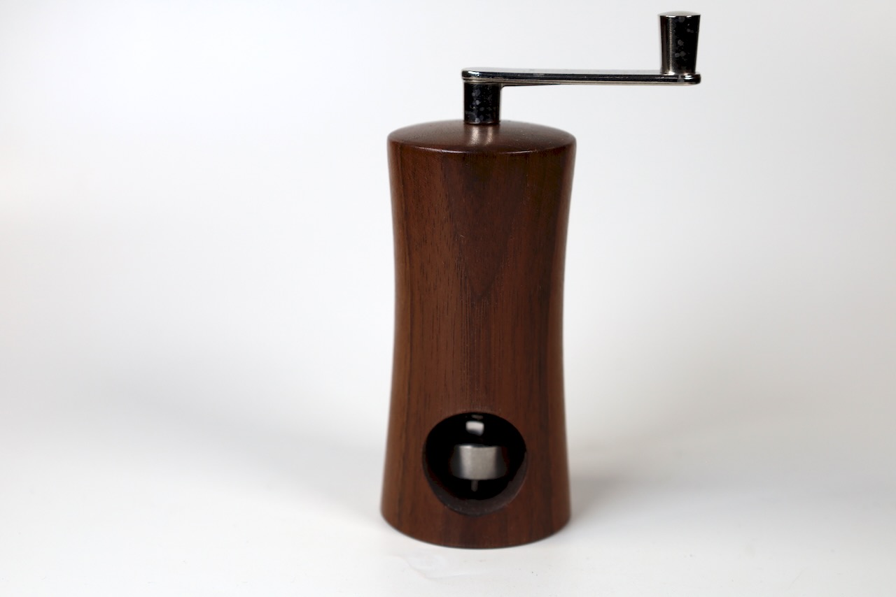 Das Präzisionsmahlwerk stammt von der Schweizer Firma Strässler und ist sehr langlebig. Das Mahlwerk ist extrem leichtgängig, also Vorsicht bei der Dosierung. Zum Nachfüllen der Mühle einfach die Kurbel nach oben ziehen und eine neue Nuss in das Loch setzen.