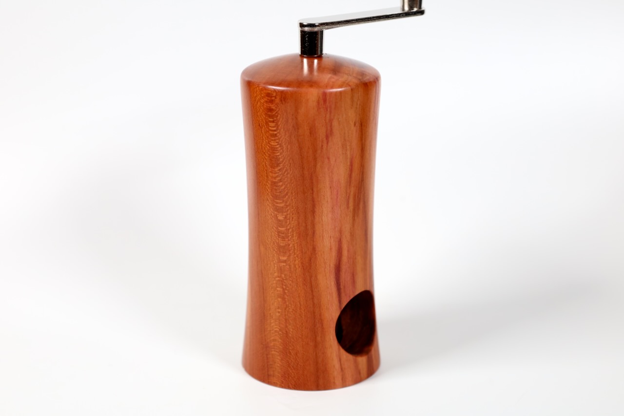 Das Präzisionsmahlwerk stammt von der Schweizer Firma Strässler und ist sehr langlebig. Das Mahlwerk ist extrem leichtgängig, also Vorsicht bei der Dosierung. Zum Nachfüllen der Mühle einfach die Kurbel nach oben ziehen und eine neue Nuss in das Loch setzen.